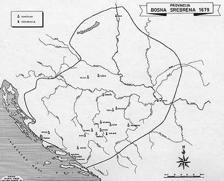 Karta franjevačke provincije Bosne Srebrene 1679. godine (autor: Andrija Zirdum)