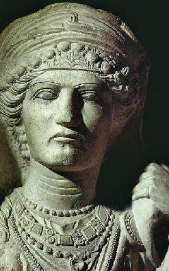 Palmira: zagrobni portreti iz 3. stoljeća pokazuju utjecaj helenističko-rimske umjetnosti, ali i bogatstvo lokalnih patricija, o čemu svjedoče raskošna odjeća i nakit ženske figure