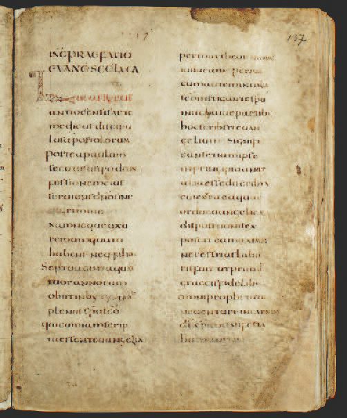 List 137r, tekst prologa Lukina evanđelja s inicijalom u obliku ribe, Riznica splitske prvostolnice