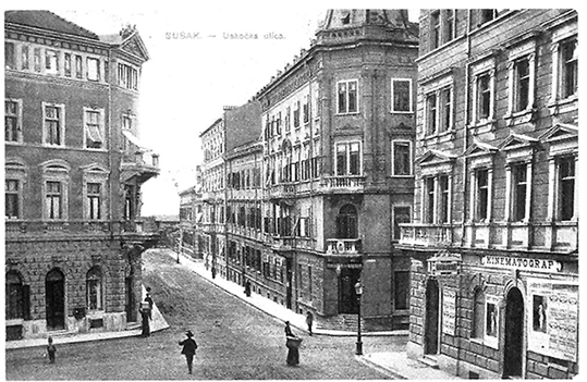 Godine 1910. otvara se i prvo sušačko kino, Kinematograf Sušak, čije je otvorenje popraćeno i posebnim filmom u kojem su sve sličice bile bojene ručno. No već 1913. godine među hrvatskim stanovništvom u Rijeci odvija se borba za hrvatski jezik u riječkim kinematografima, o čemu je pisao i riječki tisak na hrvatskom jeziku. Riječke novine 13. ožujka te godine objavljuju sljedeći tekst: Tuže nam se mnogi građani Sušaka da je vlasnik sušačkog kinematografa postao upravo izazovan prema publici koja polazi njegov kinematograf. Prijašnji vlasnici kinematografa štampali su plakate i oglase na tri jezika: hrvatski, talijanski i njemački, a današnji vlasnik štampa samo na talijanskom, kao da smo negdje u Kalabriji.