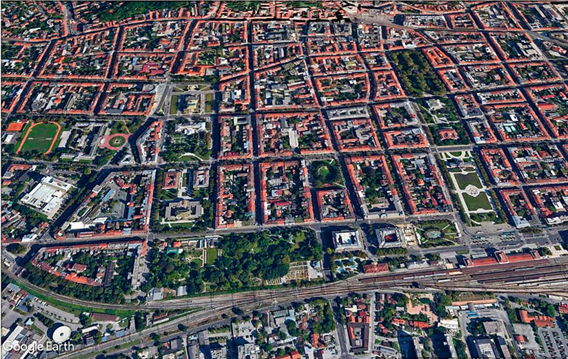 Perivojni okvir donjogradske »Zelene potkove« (Izvor: Google Earth, 29.12.2019.)