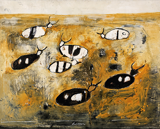 Volovi, 1967., kombinirana tehnika na šperploči, 128x161 cm, privatna kolekcija. Foto: Damir Fabijanić