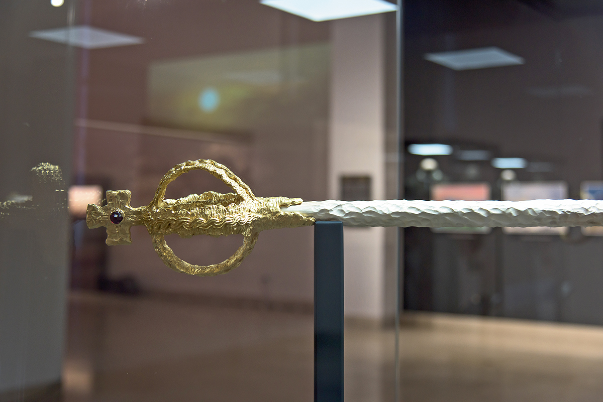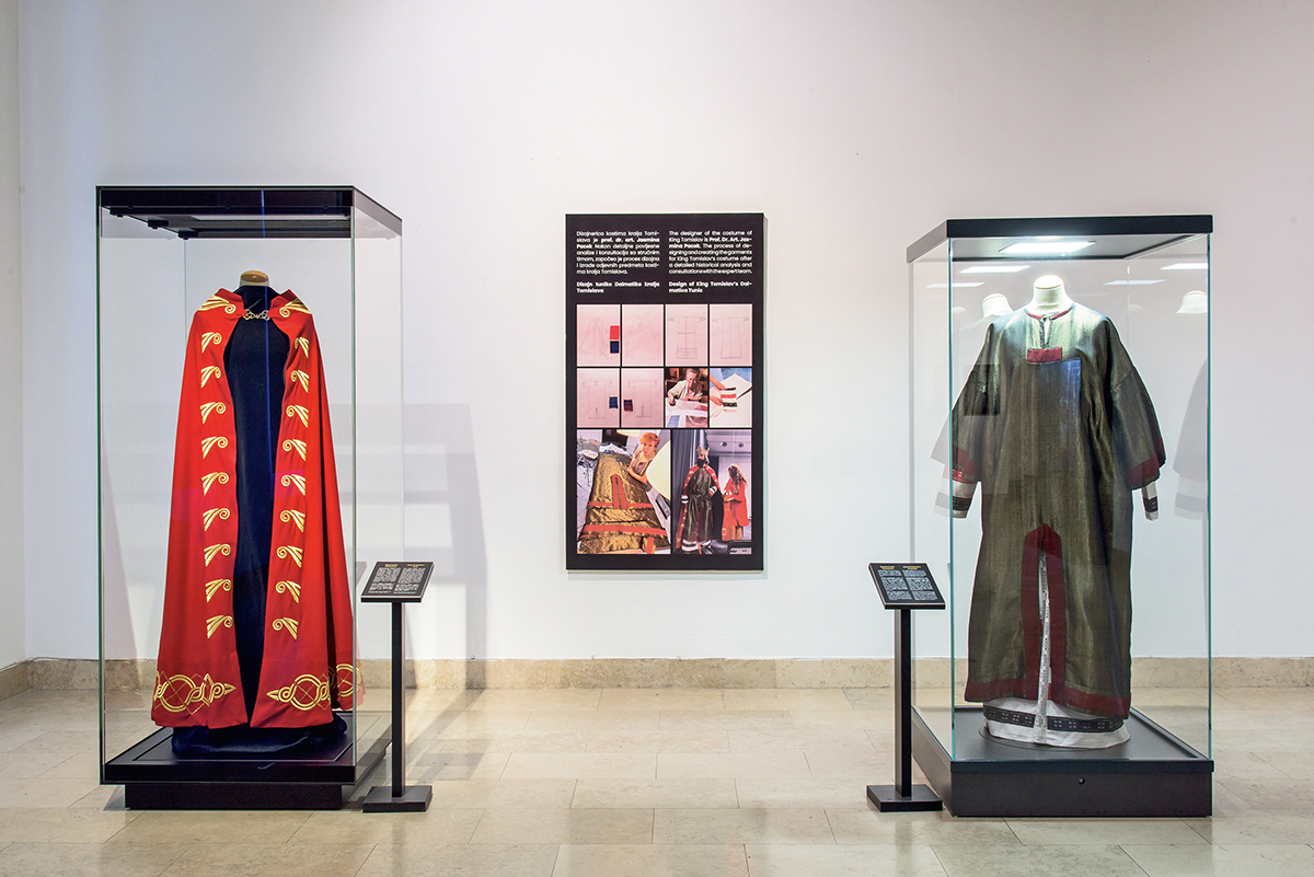 U prvoj cjelini u nekoliko vitrina izloženi su stilizirana odjeća, pojas, čizme, kruna, žezlo i mač velikodostojnika, kralja. Dizajn i izrada odjeće i obuće – donje tunike dalmatike, gornje tunike albe, plašta i čizama – povjereni su kostimografkinji izv. prof. dr. art. Jasmini Pacek s Akademije za umjetnost i kulturu u Osijeku i timu njezinih suradnika. Svaka odjevna sastavnica dizajnirana je na temelju kostimografske analize različitih arheoloških i povijesnih izvora, u skladu sa srednjovjekovnim odijevanjem vladara na širem geografskom području. U proces ručne izrade svih odjevnih slojeva (tkanje, krojenje, šivanje, vezenje) i drugih izložaka bili su uključeni brojni specijalizirani dionici: tkalac, konstruktorica kostima, krojačica, vezilja, obućari, kipari, izrađivač nakita, zlatar, poznavatelji viteške opreme i dr.. Posebnu pozornost posjetitelja, izdvojena u samostalnoj vitrini, privlači kruna kralja Tomislava izrađena, prema idejnom rješenju akademskog kipara Ilije Skočibušića, od srebra, teška 3,8 kg, s pozlatom i odabranim dekorativnim elementima. U istu cjelinu, ali izdvojeno u krajnjem, interaktivnom dijelu izložbe te namijenjeno posjetiteljima za sjedanje i fotografiranje, pripada i stilizirano visoko prijestolje s dekorativnim pleternim i zoomorfnim ornamentima.