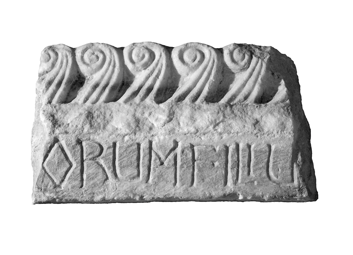 Ulomak grede septuma palatinske crkve 10. st. u Klisu s natpisom ...ORUM FILIU...