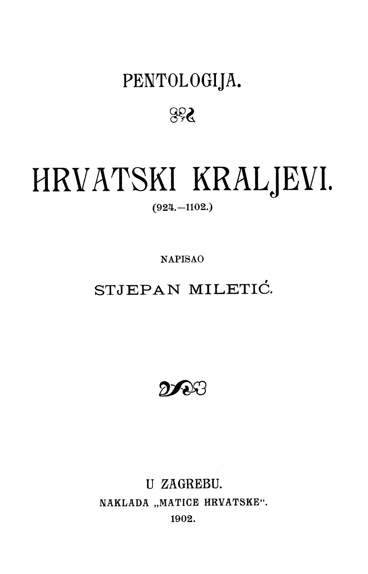 Miletić, Stjepan. 1902. Hrvatski kraljevi (924.–1102.). Prvi dio: Tomislav, prvi kralj Hrvata. Zagreb: Naklada Matice hrvatske.