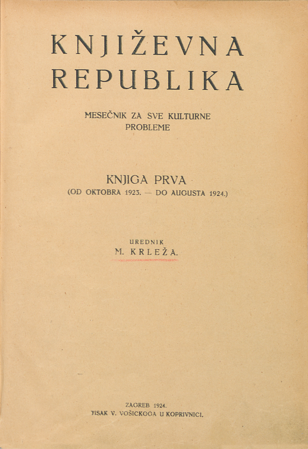 Bio je to svakako potez i projekt kojim se Krleža vratio Republici kao artističkom časopisu. Više to nije bila Književna republika, koju je Krleža pokrenuo u Zagrebu 1923. godine! Krležin časopis iz toga vremena izlazio je u razdoblju 1923–1925. u Koprivnici, tiskan u »knjižari V. Vošicki«, te u zagrebačkoj tiskari »knjižare S. Hofman« 1926–1927. Teškoće koje su pratile časopis bile su materijalne prirode, iako je Krleža pokušao spasiti časopis preuzimajući nakladu osobno u svoje ruke.