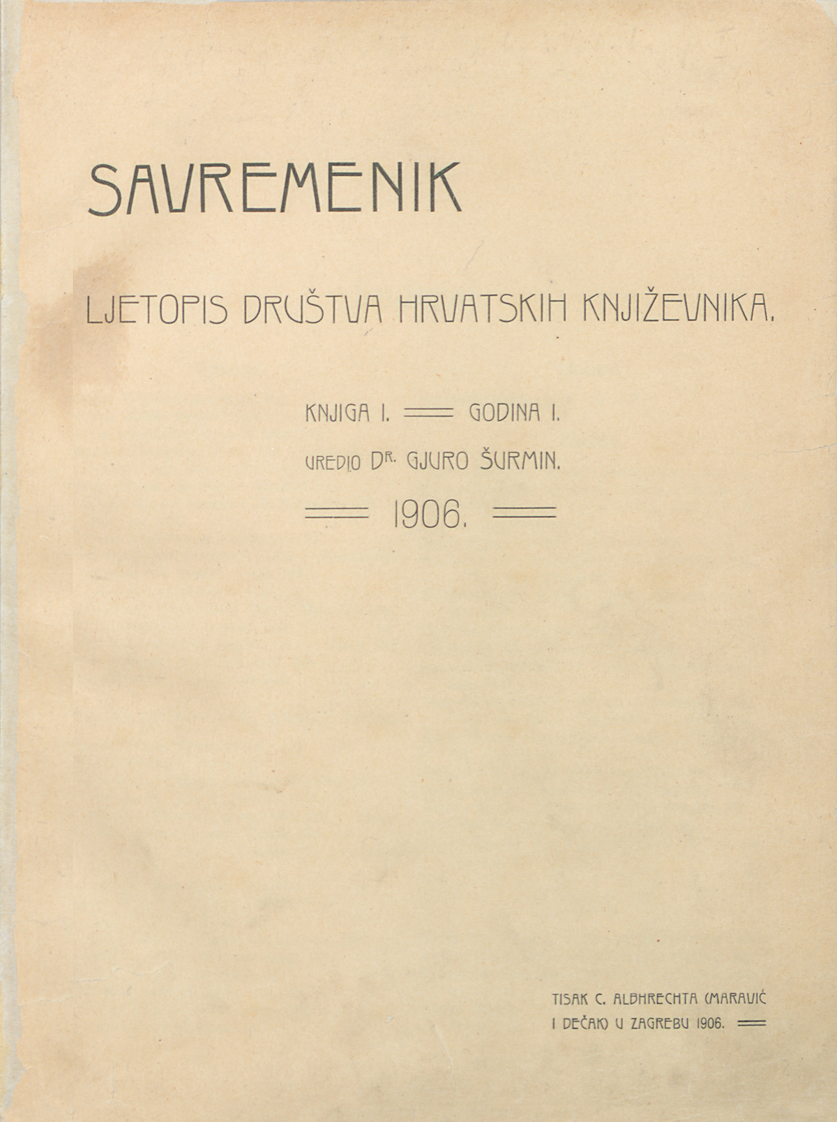 1906. 1. siječnja objavljen je mjesečnik Društva Savremenik, urednik Đuro Šurmin