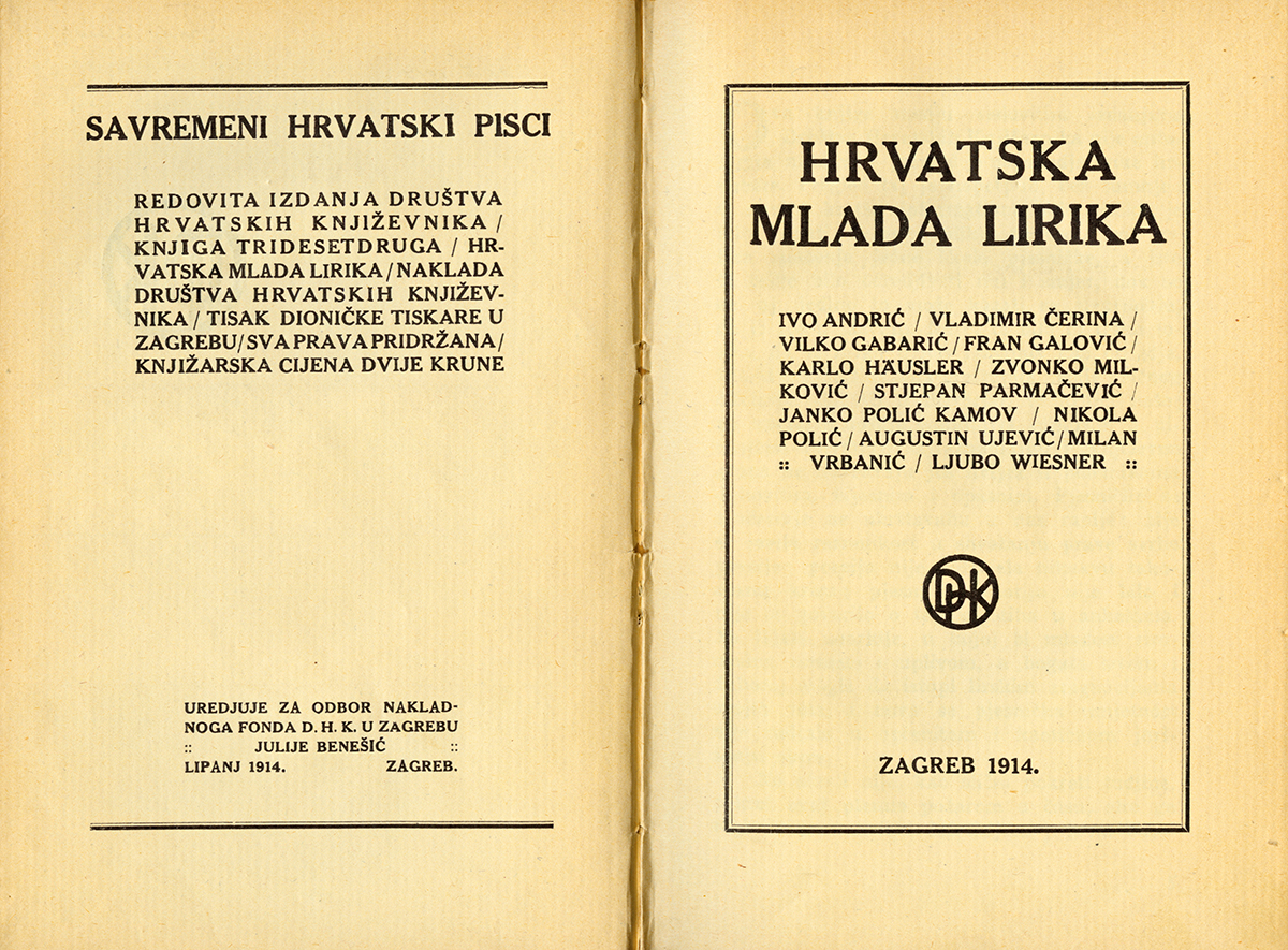 Hrvatska mlada lirika, Savremeni hrvatski pisci, Društvo hrvatskih književnika, Zagreb, 1914.