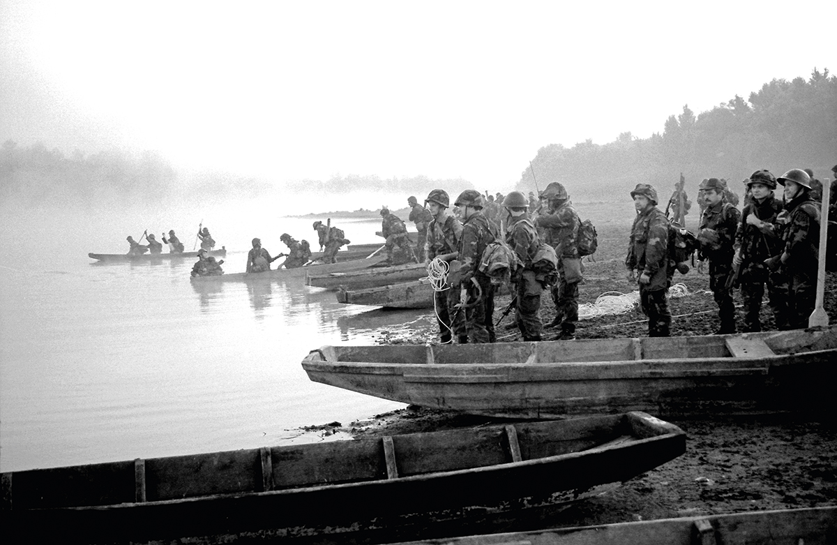 Hrvatski vojnici amfibijom prelaze Savu kod Jasenovca tijekom oslobodilačke operacije »Oluja«, kolovoz 1995. Foto: Željko Gašparović