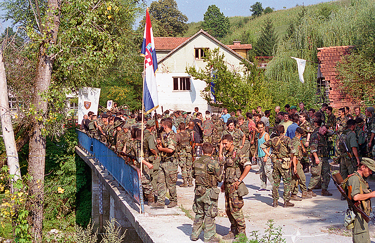 Susret saveznika (Armija RBiH i HV) na mostu kod Tržačkih Raštela, 6. kolovoza 1995., nakon što je HV omogućio deblokadu Bihaća, koje su srpske snage držale u okruženju od 1992. godine.
