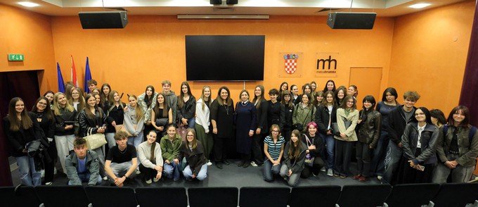 Na predavanju su također predstavljene aktivnosti koje su učenici IV. gimnazije odradili tijekom 2025. i 2026. godine u okviru školskog projekta Hrvatska glagoljaška baština pod vodstvom svoje mentorice Mirele Balešić Jović.