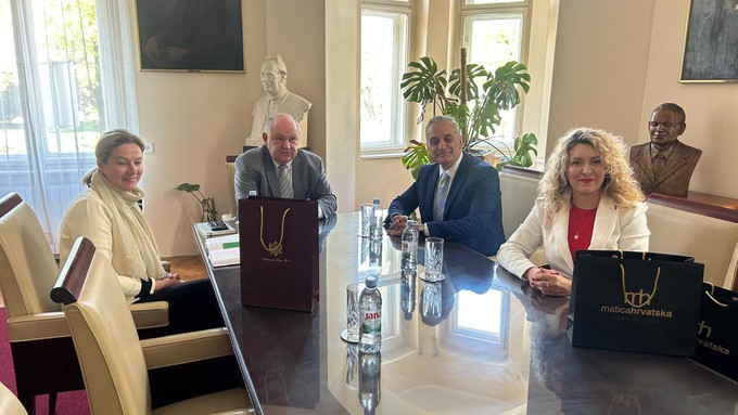 U utorak, 7. travnja u Središnjici Matice hrvatske održan je susret predsjednika Matice hrvatske Damira Zorića i veleposlanika Crne Gore u RH Nj. E. Dejana Vukovića u pratnji Jelene Ražnatović, prve savjetnice. Uz predsjednika Matice hrvatske na sastanku je sudjelovala i poslovna tajnica MH Ana Preost.