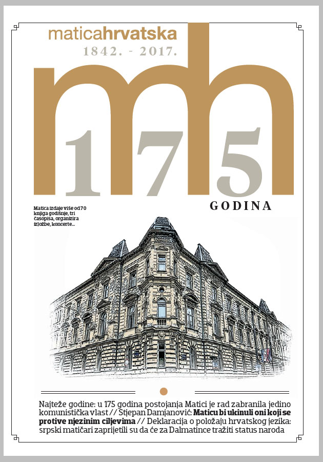 Večernji list objavio je 8. veljače 2017. (br. 19051) veliki prilog na osam stranica o Matici hrvatskoj povodom 175. godišnjice njezina osnutka. Kroz tekstove, razgovore i ankete o Matici pišu i govore Stjepan Damjanović, Miro Gavran, Mate Maras, Trpimir Macan, Žarko Domljan, Ranko Matasović, Tonko Maroević, Viktor Žmegač, Stjepan Sučić, Luka Šeput, Romana Horvat, Lahorka Plejić Poje, Goran Galić i Josip Brleković.