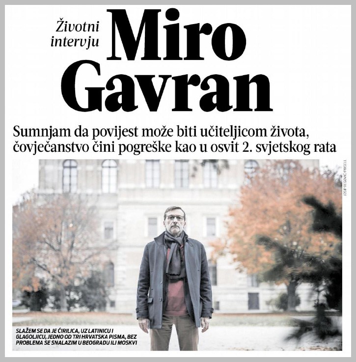 »U mojim emocijama, a i u emocijama svakog čovjeka kojem su hrvatska kultura i hrvatski identitet važni, Matica je nešto posebno, nešto iznimno. U tih stotinu osamdeset godina koliko Matica postoji predivni umjetnici, znanstvenici i prosvjetitelji su stvarali i surađivali pod okriljem Matice hrvatske. O tome koliko |e u 19. stoljeću Matica bila važna hrvatskom čovjeku ne treba trošiti riječi, u razdoblju između đva svjetska rata također je imala iznimno značajnu ulogu, kao i od 1967. pa do 1971. godine. Bio sam 1990. na onoj obnoviteljskoj Skupštini Matice hrvatske i pamtim taj zanos koji je prožimao nazočne u osvit stvaranja hrvatske države. Od tada sam član Matice hrvatske, a od 2000. do 2006. bio sam i pročelnik Odjela za kazalište i film te pokrenuo međunarodni simpozij o suvremenoj hrvatskoj drami i kazalištu. Kao pisac sam surađivao s desecima matičinih ogranaka u Hrvatskoj, BiH i svijetu. U zadnja dva mandata bio sam članom Glavnoga odbora MH i usuđujem se reći da poznajem ustroj, vrline i mane te ustanove, te umišljam da mogu pridonijeti njezinu djelovanju i poboljšanju učinkovitosti, uvažavajući sve ono što je ona do sada značila, a to je da bude i ostane čuvaricom naše tradicije i našeg identiteta, te graditeijicom bolje budućnosti naše djece. Matica je udruga ljudi kojima su hrvatska kultura, znanost, prosvjeta, gospodarsrvo na srcu«… (Miro Gavran, Večernji list, 28. XI. 2021)