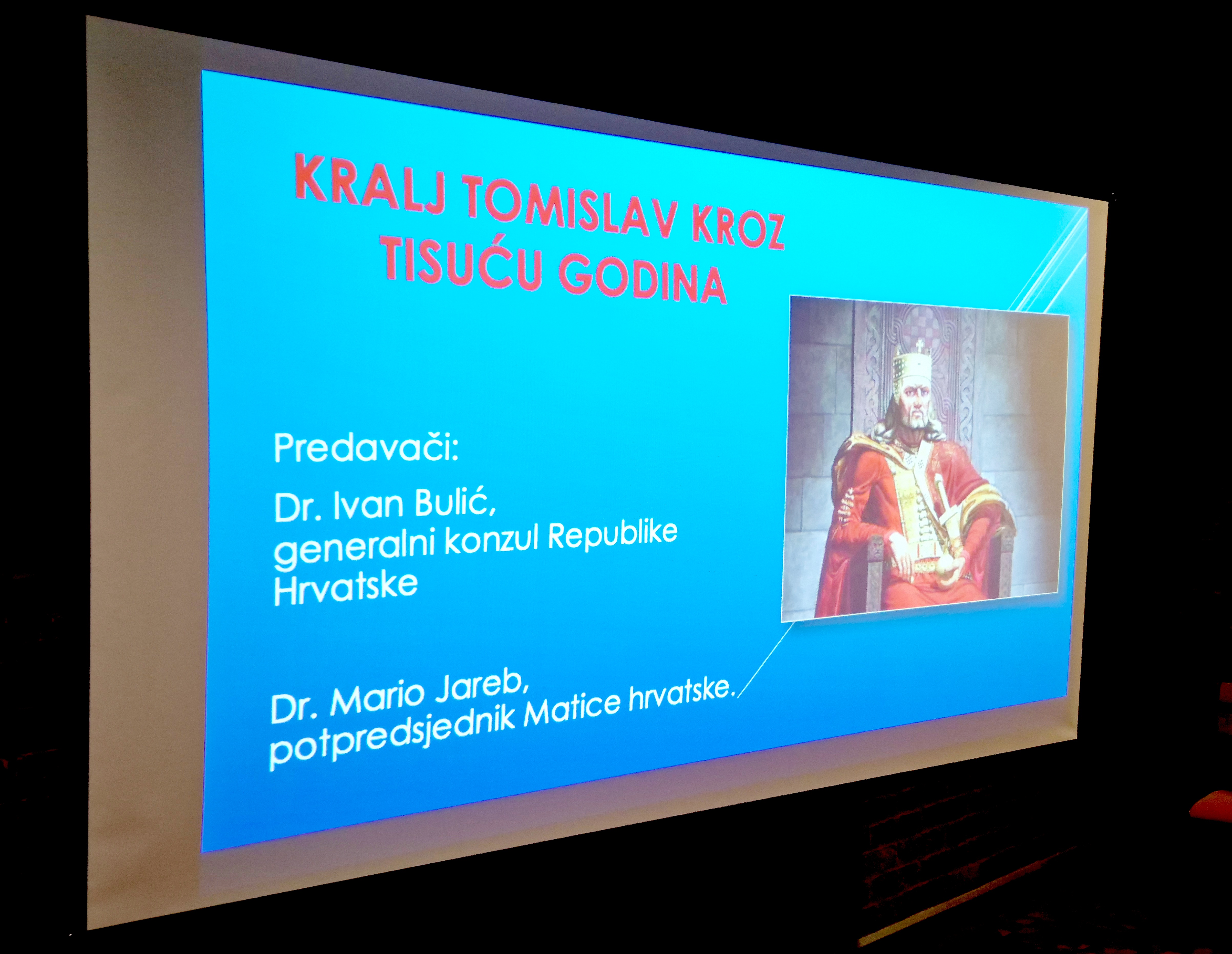 Generalni konzul Bulić je izlaganje „1100. godina Hrvatskoga Kraljevstva – Prvi hrvatski kralj Tomislav: Istina, mit i identitet” uskladio s naslovom te okupljene upoznao s temeljnim izvorima, povezao ih s konkretnim događajima, inkorporirao u onodobni kontekst, dakle kontekst 9. i 10. stoljeća te u konačnici nazočnima ponudio da svatko za sebe odgovori na sumnje i prijepore u svezi kralja Tomislava koji dominiraju javnim prostorom. U konačnici je nazočne upoznao s višestrukim pokušajima manipulacije prvoga hrvatskoga kralja Tomislava, a poradi izgradnje identitetskih obrazaca režima 20. stoljeća. Bulić je završio riječima kako je prvi hrvatski kralj Tomislav našao svoj smiraj na mjestu koje mu i pripada u sklopu hrvatskog nacionalnog identiteta.