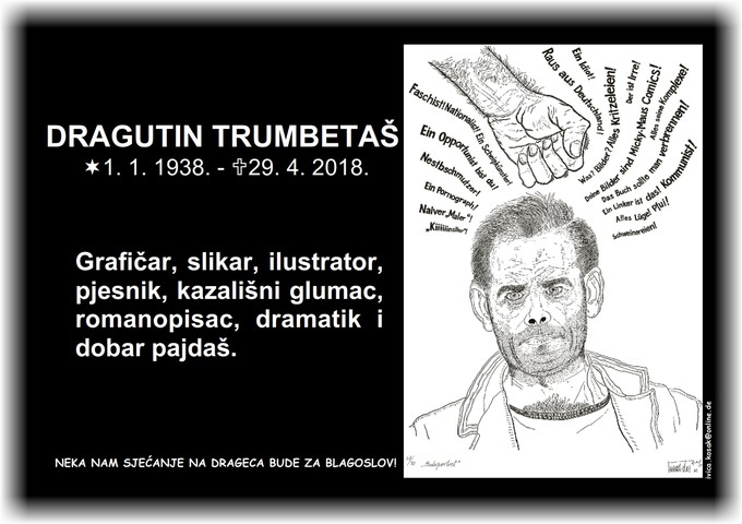 Dragutin Trumbetaš preminuo je 29. travnja 2018. godine u 80-toj godini života. Za sobom je ostavio bogat opus likovnih radova, crteža, ilustracija, romana i monografija.