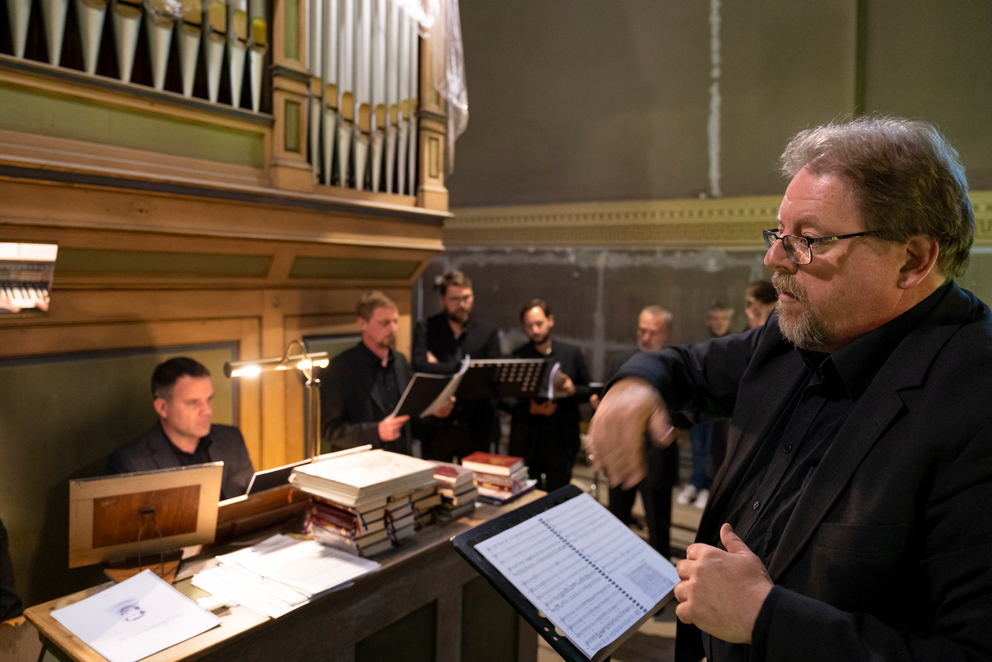 Mo. Robert Homen, dirigent i profesor na Muzičkoj akademiji u Zagrebu uz orguljsku pratnju Nevena Kraljića, orguljaša zagrebačke katedrale, ravnao je pjevačkim ansamblom koji je za prigodu predstavljanja kantuala u Zagrebu i prethodno na Mulu (24.svibnja) vrsno umjetnički izveo Ebertove skladbe, te ih tako na najneposredniji način približio brojnim okupljenim sudionicima događaja, što je samoj misi i predstavljanju dalo jedinstveni duhovni i glazbeni pečat.