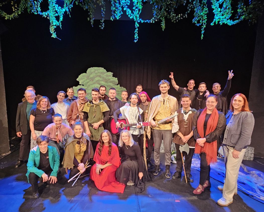 Robina je odigrao Mark Krcivoj (ujedno i tajnik jaskanskog ogranka Matice hrvatske), Alice de Bauforest bila je Maja Žalac, a Bess Jana Valečić (obje članice Predsjedništva jaskanskog ogranka). U predstavi su još nastupili Nika Pustaj (Lady Marian), Bruno Major (Will Scarlet), Lovro Penić-Ivanko (fratar Tuck), Andrija Ferko (Mali John), Filip Grgas (Alan-A-Dale), Fran Hrvoj (Much), Dorian Rodić (Princ Ivan), Ivan Zoretić (Guy od Gisbournea), Niko Pavelić (Šerif od Nottighama), Leon Vlašić (Crni Hugo), Tomi Kopić (Reynold), Lovro Valečić (Greenleaf), Patrik Cipovec (Crna Guja) i Bruno Lucić (Crni Poskok). Proslavljenog Richarda Lavljeg Srca (koji se, prema nekim predajama, jedno vrijeme skrivao na dubrovačkom otočiću Lokrumu) odigrao je legendarni jaskanski glumac Dean Skok, koji ove godine slavi 43 godine na daskama jaskanskog kazališta.