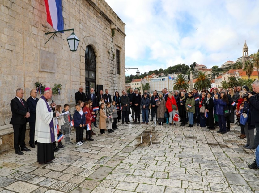 U gradu Hvaru, sjedištu drevne Hvarske biskupije, starom hrvatskom i europskom kulturnom središtu, srcu Jadranskoga mora, održano je 7. veljače 2026. završno svehrvatsko slavlje otkrivanjem i blagoslovom spomen–ploče podignute u čast velegoda hrvatske povijesti 1100 GODINA HRVATSKOGA KRALJEVSTVA, koji svjedoči o neraskidivoj povezanosti hrvatske povijesti s papinstvom i kršćanskom Europom.