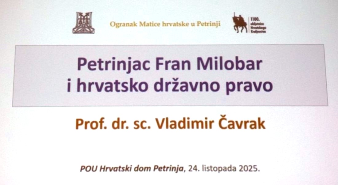 U organizaciji Ogranka Matice hrvatske u Petrinji, a povodom 80. godišnjice smrti Frana Milobara i prigodom 1100. obljetnice Hrvatskoga Kraljevstva održano je predavanje „Petrinjac Fran Milobar i povijesno hrvatsko državno pravo“.
