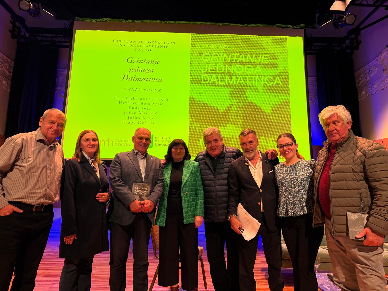 U prepunoj dvorani Hrvatskog doma u Splitu 16. ožujka 2026. održano je predstavljanje knjige Grintanje jednoga Dalmatinca autora Marija Nazor – djela koje se naizgled rađa iz jednostavne dalmatinske sklonosti gunđanju i komentiranju svakodnevice, ali u svojoj srži prerasta u mnogo šire svjedočanstvo o vremenu, prostoru i ljudima.