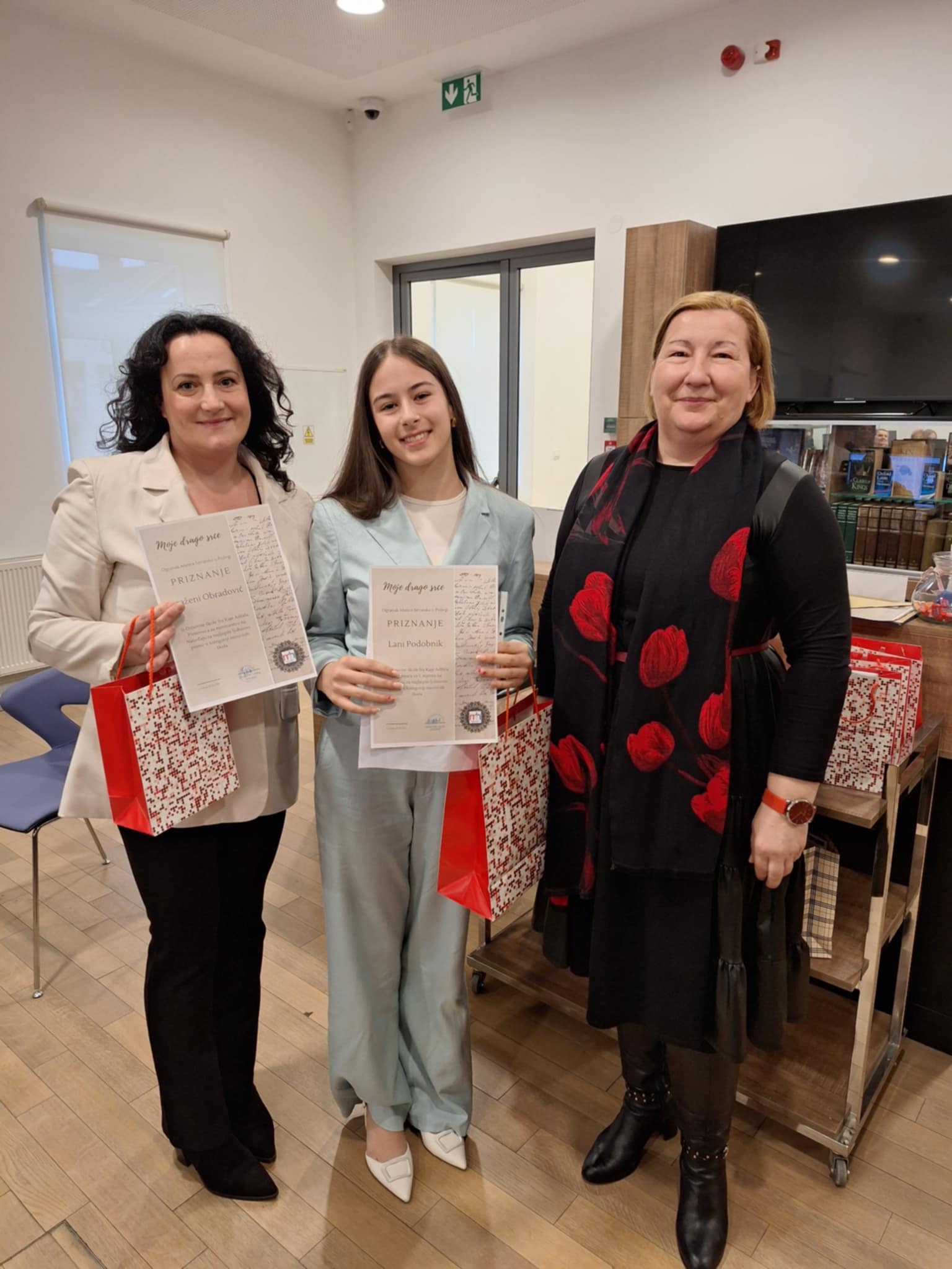 Zahvalnice i darove za najuspješnije napisana ljubavna pisma učenicima je i njihovim mentorima podijelila Anita Katić, predsjednica Ogranka. Prosudbeno povjerenstvo u sastavu: Marijana Čorluka, Kristina Lešić, Blanka Đimoti Zima i Mihajla Varžak odlučilo je ove godine proglasiti najuspješnijima i nagraditi sljedeće učenike i njihove radove.