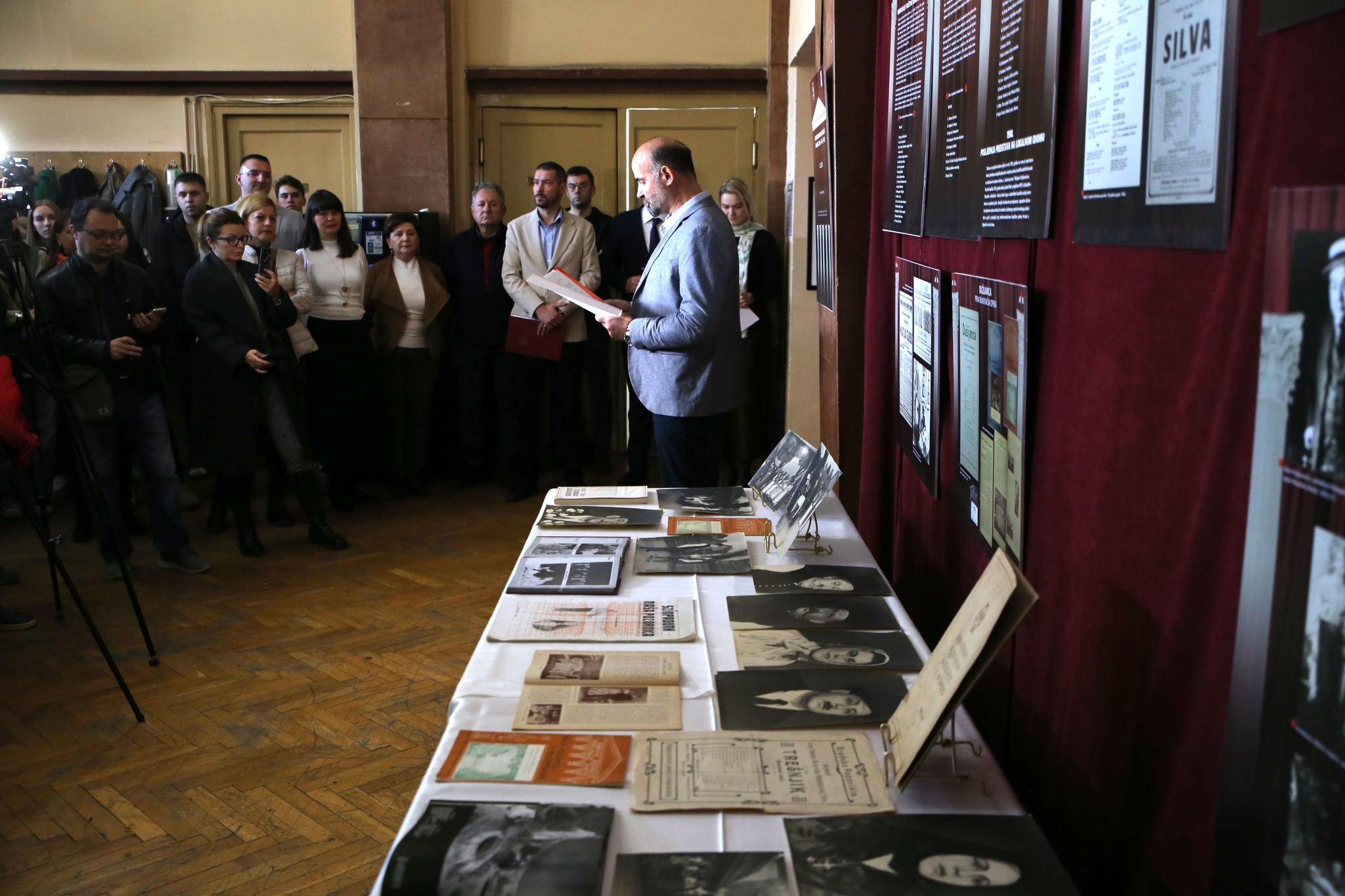 U programu otvorenja izložbe sudjelovala je glumica Karla Rudić, interpretirajući ulomak iz sjećanja prvakinje subotičke drame i opere Jelke Šokčević-Asić na dolazak iz Zagreba u Suboticu 1945. godine te na prve godine rada u kazalištu, kao i monolog iz drame suvremenoga zavičajnog hrvatskog pisca Petka Vojnića Purčara Dolaziš, opet, Adame. Voditelj programa Zoltan Sič podsjetio je na izvedbu prve predstave Matija Gubec Mirka Bogovića u režiji Branka Špoljara i scenografiji Berislava Deželića, dok je izložbu otvorio potpredsjednik Pokrajinske Vlade Tomislav Žigmanov naglasivši kako danas subotičko kazalište ima Dramu na srpskom jeziku i Dramu na mađarskom jeziku, a da je 2023. godine posljednji put pokrenuta inicijativa za povrat Drame na hrvatskom jeziku u subotički teatar. Program je podržalo Pokrajinsko tajništvo za kulturu, javno informiranje i odnose s vjerskim zajednicama.