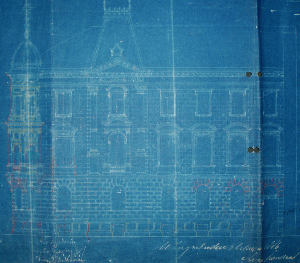 9. Zapadno, glavno pročelje Matičine palače. Nacrt Ferde Kondrata, studeni 1886.