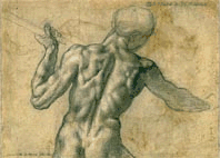 Ovogodišnja ljetna izložba u bečkoj Albertini pokazuje u usporedbi s lanjskom ljetnom izložbom hvalevrijedan napredak. Dok smo prošle godine na plakatima uzaludno tražili namjerno izostavljenu napomenu o izloženim faksimilima, ovoga ljeta straha nema. Gotovo sva od oko stotinu izloženih djela originali su iz 16. stoljeća. Eto čuda: novouređenoj je Albertini konačno pošlo za rukom ostvariti čistu grafičku izložbu koja se oslanja isključivo na kućni fundus, bez posudbi iz znamenitih europskih zbirki - bez prakse, dakle, na koju je direktor Schröder tako ponosan. Kad se već Sikstinskoj kapeli nije išlo na sjever, a Tondo Doni, jedina dovršena i očuvana Michelangelova slika na pokretnom nosiocu, nema običaj napuštati prostore galerije Uffizi u Firenci - Albertina se okrenula svome Michelangelu. Samo kako...