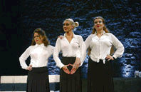 I dok se u teatarsko-socijalne razloge postave ipak pomalo već izigrana teksta Eve Ensler može proniknuti, jer problemi položaja žena u suvremenom svijetu nisu prevladani, a uvijek se otkrivaju i novi, dubrovački Monolozi pate od izrazita nedostatka dramaturške obrade. Stoga, unatoč sjajnu oblikovanju svjetla Zorana Mihanovića, zanimljivoj likovnosti Dubravke Lošić, koja se više ogleda u simboličkim elementima scene nego u, valjda namjerno odabranim, strogim kostimima bijelih bluza i crnih suknji koji nisu uspjeli stvoriti simbolički odmak, te velikoj scenskoj energiji, posebno Jasne Jukić, ali i Glorije Šoletić i Izmire Brautović, koje su u predstavu pokušavale unijeti dijelove vlastitih osobnosti, pa i pokušajima semantičkih lokalizacija pojedinih izraza na dubrovački govor - dubrovačka postava Monologa ipak najviše sliči spominjanoj kabaretskoj dosjetki - od koje su, treba kazati, i sami Monolozi u New Yorku i krenuli. Ipak, ta predstavana nije primjerena velikoj sceni Kazališta Marina Držića.