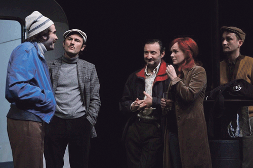 U postavljanju ovog dramskog teksta redateljica je vrlo sustavno razradila tipove koje McPherson ispisuje. Njoj je, očito, sve jasno i ni o čemu nema nedoumica. Finbar (Sven Medvešek) i Jack (Dražen Kühn) očito su antipodi. Jedan neuspješan alkoholičar, a drugi uspješan poduzetnik koji su tek koji put priušti opiti se u lokalnoj gostionici. I među njima je svaka rečenica razlog za sukob. Vlasnik gostionice, svedene na kamp-kućicu s nekoliko grijaćih lampi – stolova, Brendan (Sven Šestak) nesiguran je, pomalo neprilagođen, seksualno nerealiziran, nježan i sramežljiv samac koji u nekim trenucima zbog pretjerane blagosti u ophođenju postaje i pomalo feminiziran. Jedan od seoskih gubitnika je i Jim (Ozren Grabarić), u kojega su očiti blagi kompulzivni poremećaji, poneki tik i klinički čista slika mamina sina koji bježi od pomisli da njegova opsesivna majka ne može i neće živjeti vječno. Valerie (Ksenija Pajić) oprezna je i nesigurna, ali lijepa žena za koju je život, zbog nedavnih događaja, razbijen i koja hrabro odlazi u novi grad ne bi li smogla snage da skupi krhotine i započne iznova. Svaku od traženih karakternih studija glumci su odigrali vrlo precizno i točno, čak i kada im je bila izazov i čak i kada bi malo glumačke slobode značilo pozitivan pomak u interpretaciji lika.