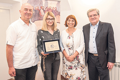i Priznanje za najuspješniji pjesnički rukopis 2018. Na fotografiji: predsjednik Prosudbenog povjerenstva Krešimir Bagić, laureatkinja Marija Dejanović,