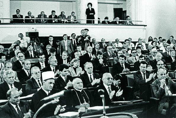 Zasjedanje Sabora SRH 30. svibnja 1990. simbolički označava obnovu političkog višestranačja i jačanja vjerskih sloboda bez obzira na konfesiju / Izvor: Hrvatski sabor