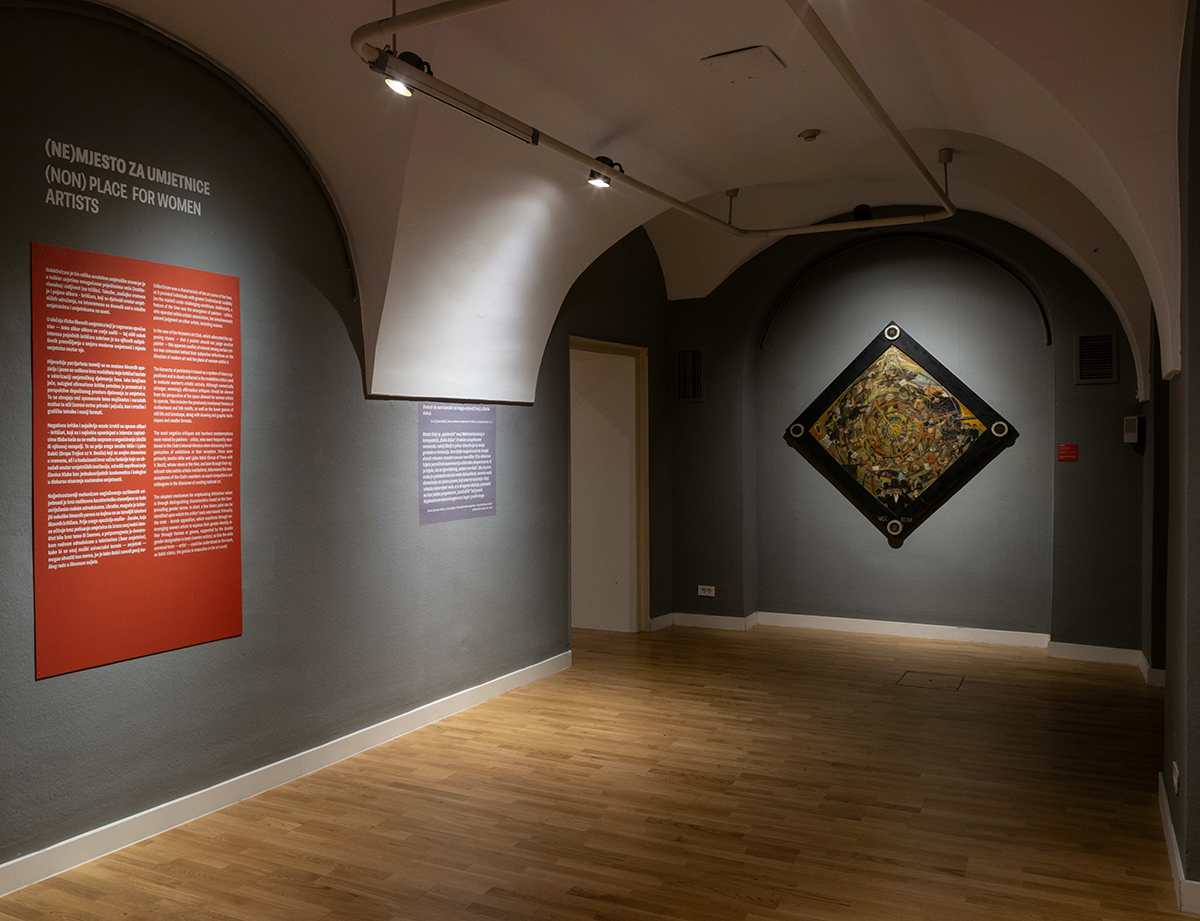Tematska cjelina (Ne)mogućnosti školovanja umjetnica, s radovima vezanima uz umjetničke procese i obrazovanje prelijeva se u cjelinu Gdje je mjesto umjetnicama? koja problematizira radove s tematikom majčinstva, seoskog i obiteljskog života, tradicije i vjere. Autorice izložbe odlučile su prikazati „prikladne“, poticane, ograničavajuće, „ženske“ teme – sve samo ne larpurlartističke. Slična linija naracije je i u idućim dvjema cjelinama u kojima su radovi grupirani prema motivima pejzaža i mrtve prirode, te urbanih i seoskih vizura. Svakako valja istaknuti Muško dijete Zöe Borelli Alačević iz 1931. te ulja na platnu Cate Dujšin-Ribar s prikazima djevojčica. U postavu je zanimljivo pratiti kombinacije sličnih kompozicija i motiva, a različitih medija i stilova poput skulpture Posavka Mile Wod iz 1930, tempere na papiru Portret seljanke Dalmatinske zagore Zöe Borelli-Alačević iz 1937. i ulja na platnu Glava djevojke s bijelim rupcem Vere Nikolić Podrinske iz 1926.