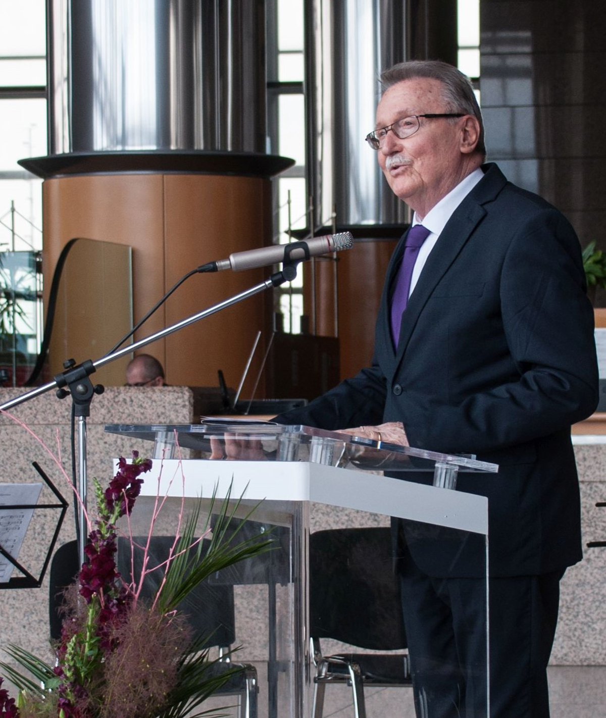 Akademik Velimir Neidhardt, predsjednik HAZU, član autorskog tima projekta zgrade NSK, na svečanoj proslavi 30. obljetnice preseljenja