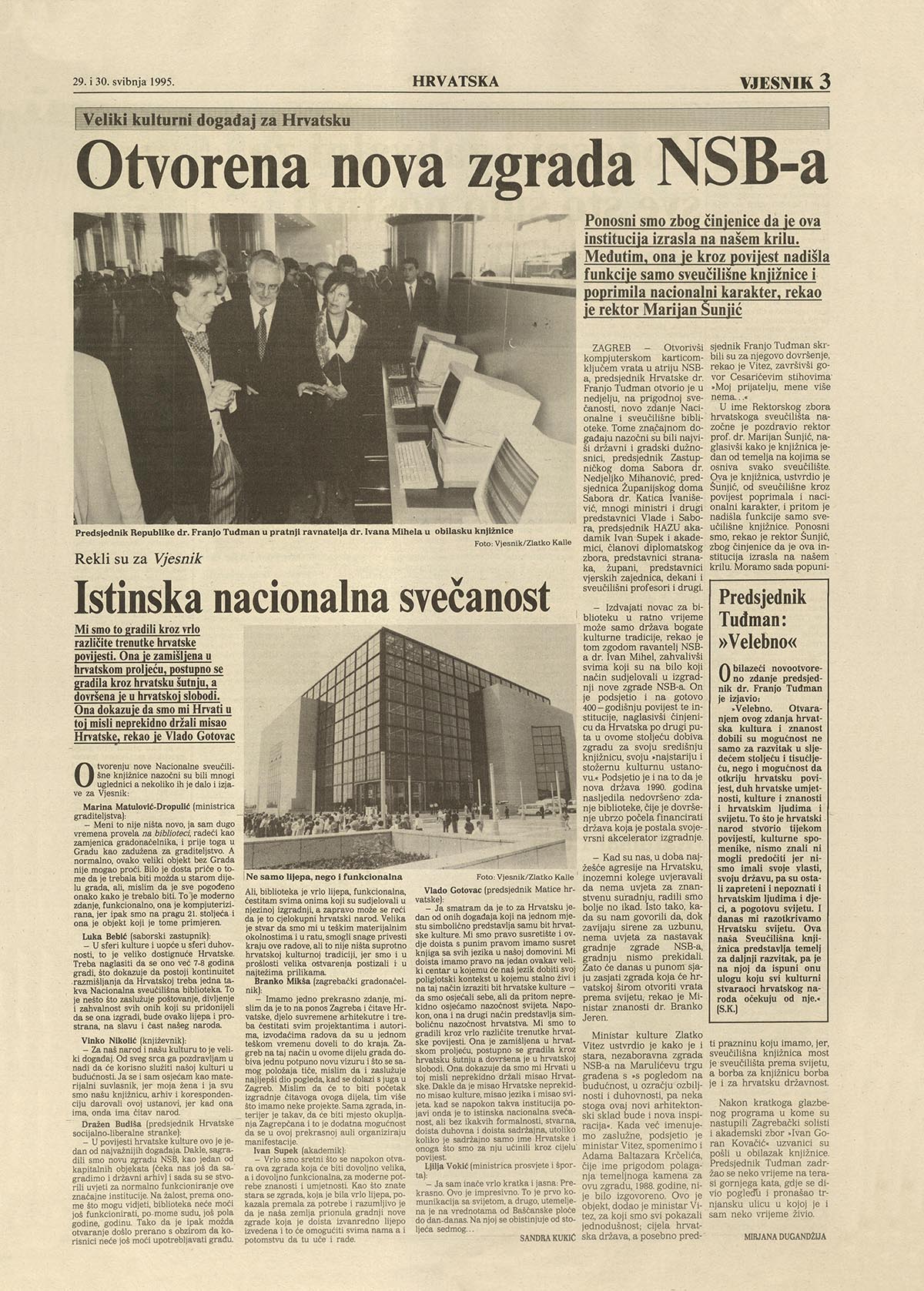 Članak o otvaranju nove zgrade knjižnice u Vjesniku / Izvor Fotodokumentacija Vjesnika