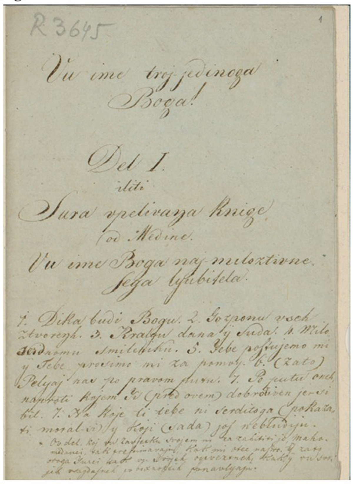 Naslovnica kajkavskog prijevoda Kur’ana, R 3654,