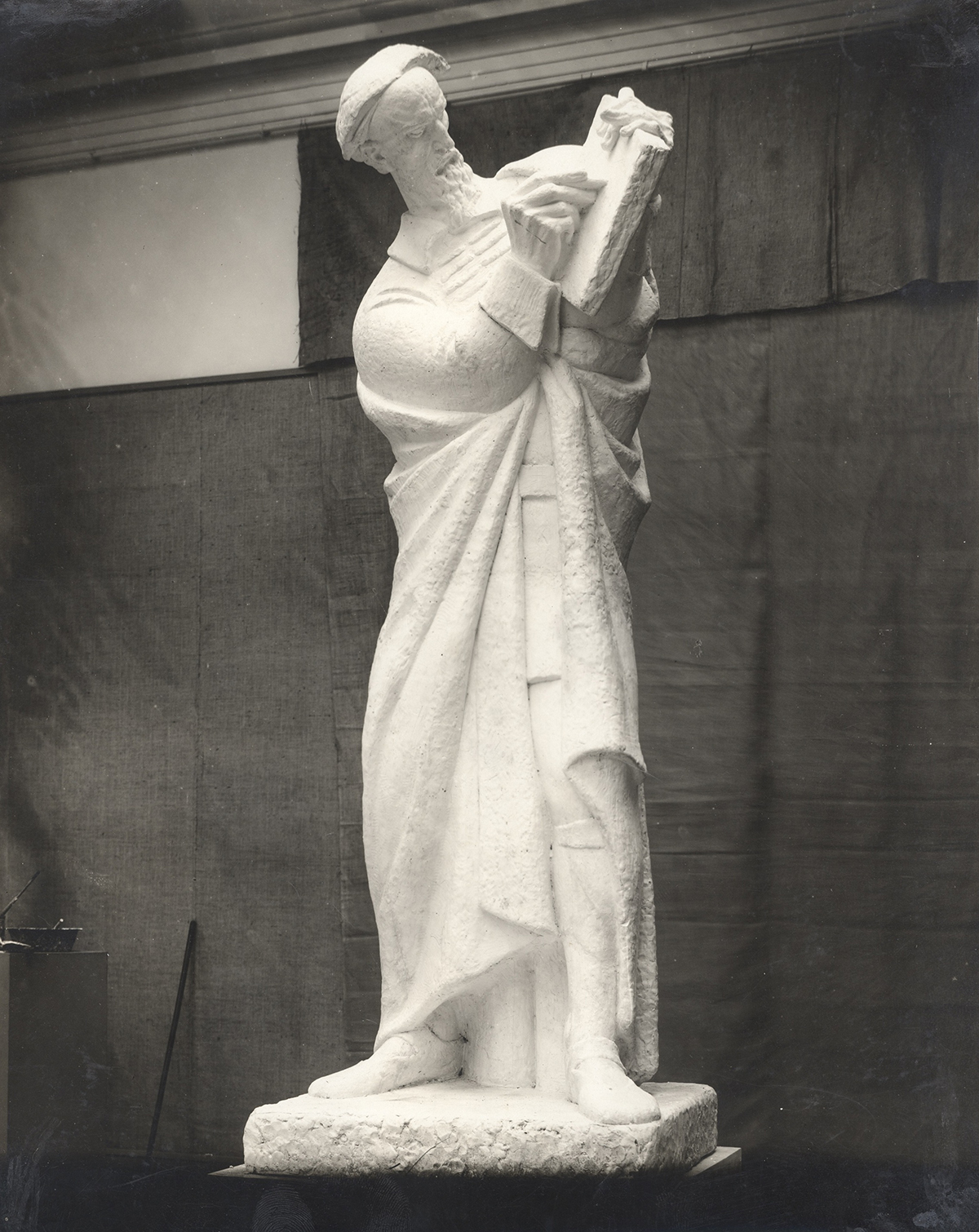 Na drugome crtežu, Sjedeći muškarac s knjigom (Prorok), nastalom u New Yorku iste godine, prevladavaju mekoća i redukcija poteza, ovoga puta ugljenom. Umjesto sjenčanja, volumen se gradi razmacima linija i kontrastom zaobljenih oblika torza i dijagonalno ispruženih ruku. Time se ostvaruje dinamičan kontrapost. Uz to, izložene su i četiri studije za spomenik Marku Maruliću, u kojima je autor istraživao različite impostacije i geste ruku, pokazujući proces nastanka monumentalnog rješenja.