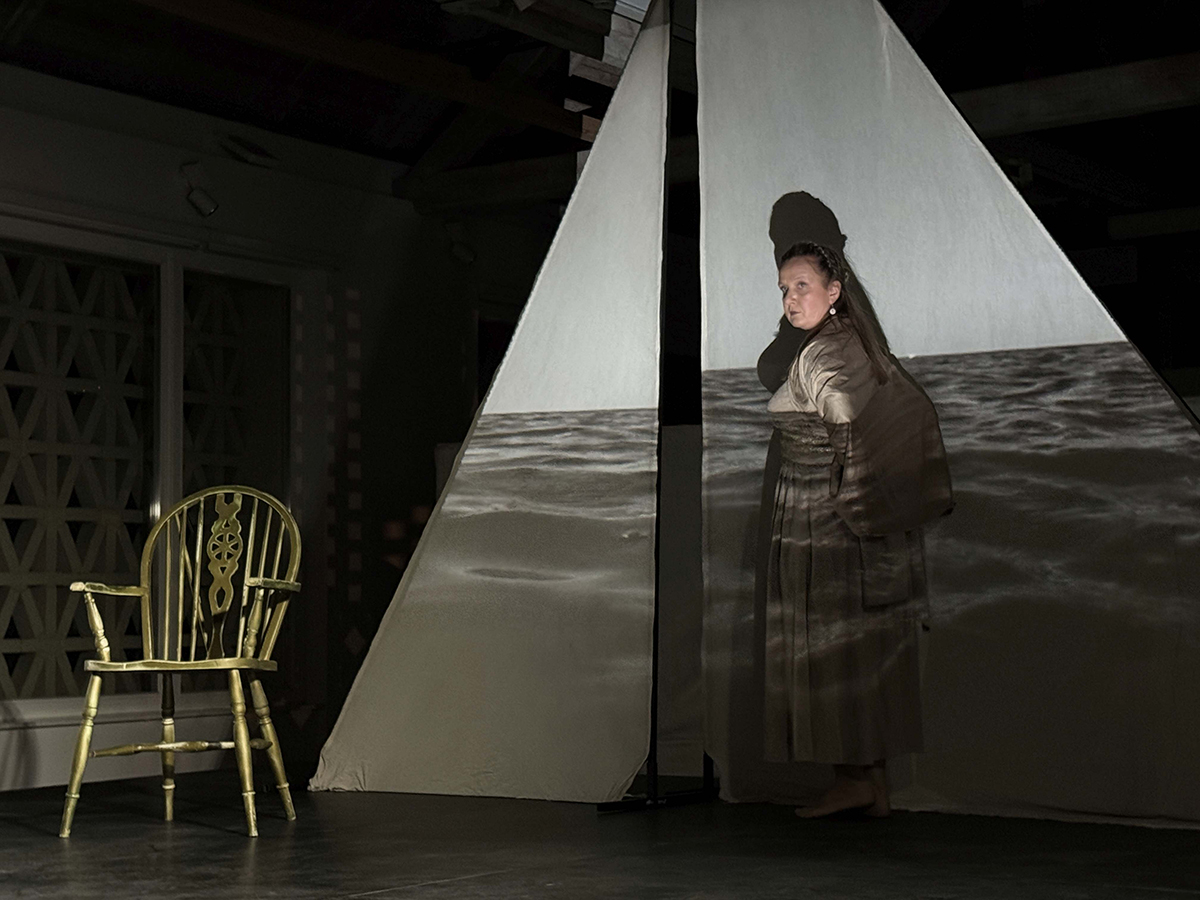 Monodrama u izvedi Marine Kostelac već je vizualno u suglasju s kultom majke koja prožima Balotine stihove progovarajući o teškom životu žene, ali metaforičkim slijedom i istarske zemlje. Bosonoga glumica u jednostavnoj haljini s elementima nošnje poigravajući se maramom kao rekvizitom čini od marame pokrivalo za glavu, ali i mitraljez u ruci „soldata“ i raku prilikom izvođenja naslovne pjesme Dvi daske.