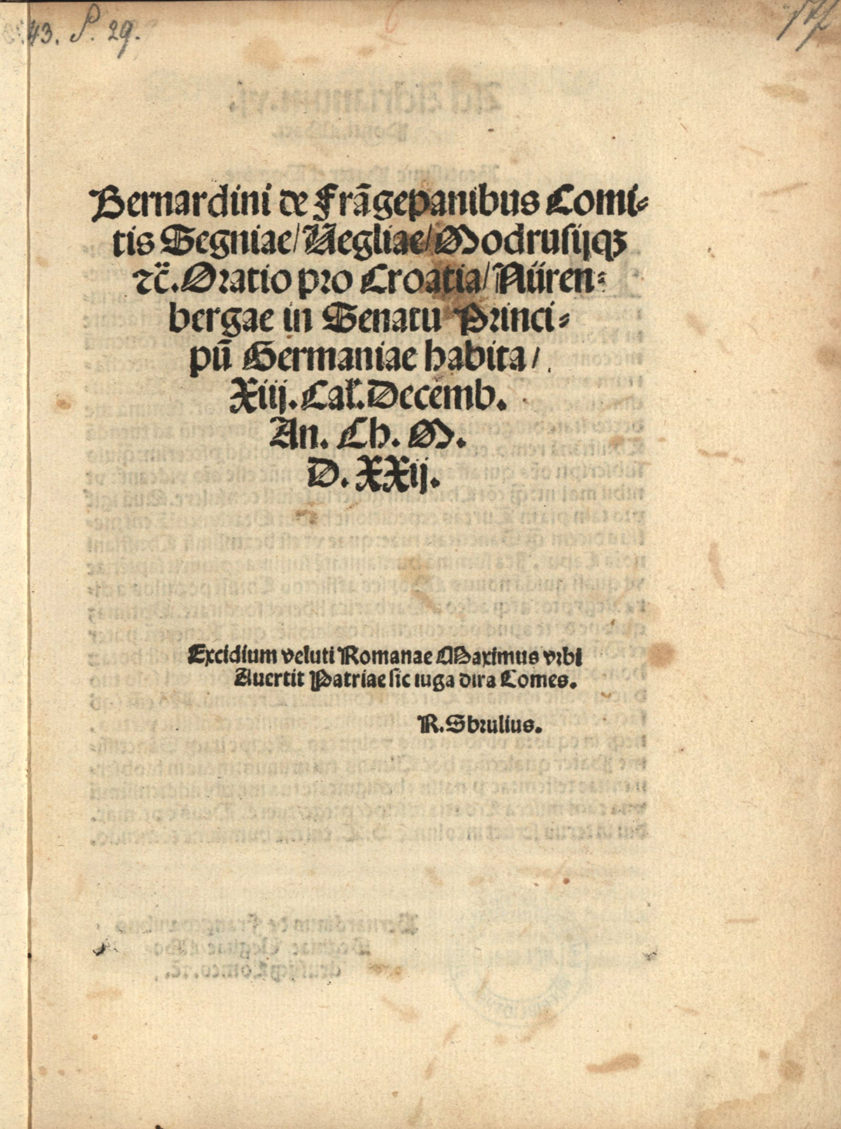 (Oratio pro Croatia iz 1522) iz Beča