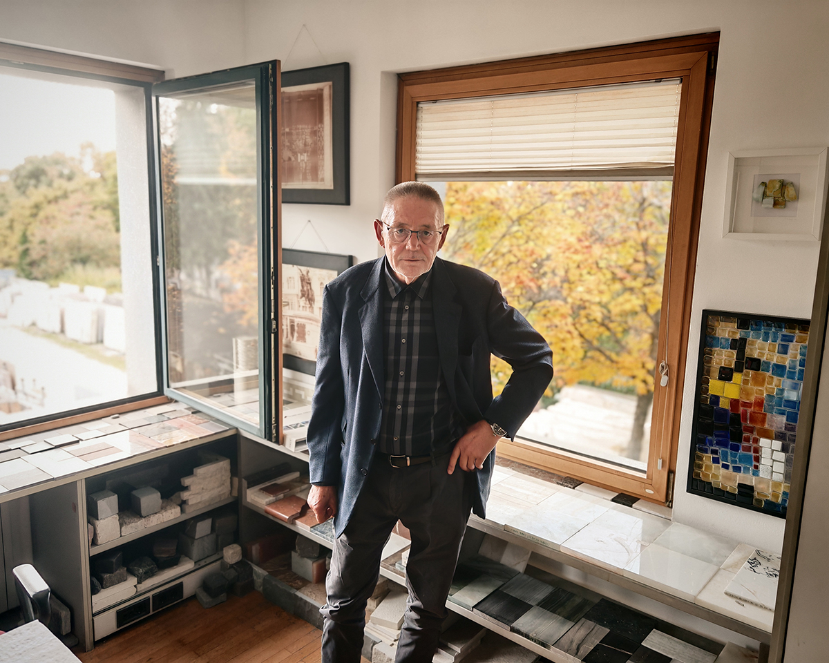 Sjedeći u impresivnom uredu – među zidovima obloženima kamenim fragmentima i uzorcima prošaranih tekstura nalik geološkom atlasu – vodimo razgovor o spomenutoj monografiji koja je nastajala šest godina. Za čovjeka koji je navikao stvarati u samozatajnoj tišini i koji preferira da djela govore sama za sebe to je bio neuobičajen pothvat. Do njega vjerojatno ne bi ni došlo da nije bilo uporne inicijative i svojevrsnog pritiska Tadijinih prijatelja i suradnika svjesnih neizmjernog obima i vrijednosti njegova stvaralaštva. „Kamen je beskonačan“, govori nam. Već iz te jednostavne, ali indikativne konstatacije naslućujemo duboko emocionalan, gotovo mističan odnos koji gaji prema predmetu svoje životne vokacije. Temeljeći svoja ostvarenja na tehničkoj preciznosti i istančanom umjetničkom osjećaju za formu i likovnost, Tadija Barbarić utjelovljuje pojam majstora zanatlije u najuzvišenijem smislu te riječi. Promatrajući koloristički i proporcionalno odmjerene mramornih intarzije na jednom od zidova njegova ureda, Tadijina mi duhovna i filozofska promišljanja o kamenu u sjećanje prizivaju tradicije starih majstora i njihovih srednjovjekovnih nasljednika, čuvenih Cosmatija, koji su posredstvom tehnike opus sectile u kamenu iščitavali poredak svemira.