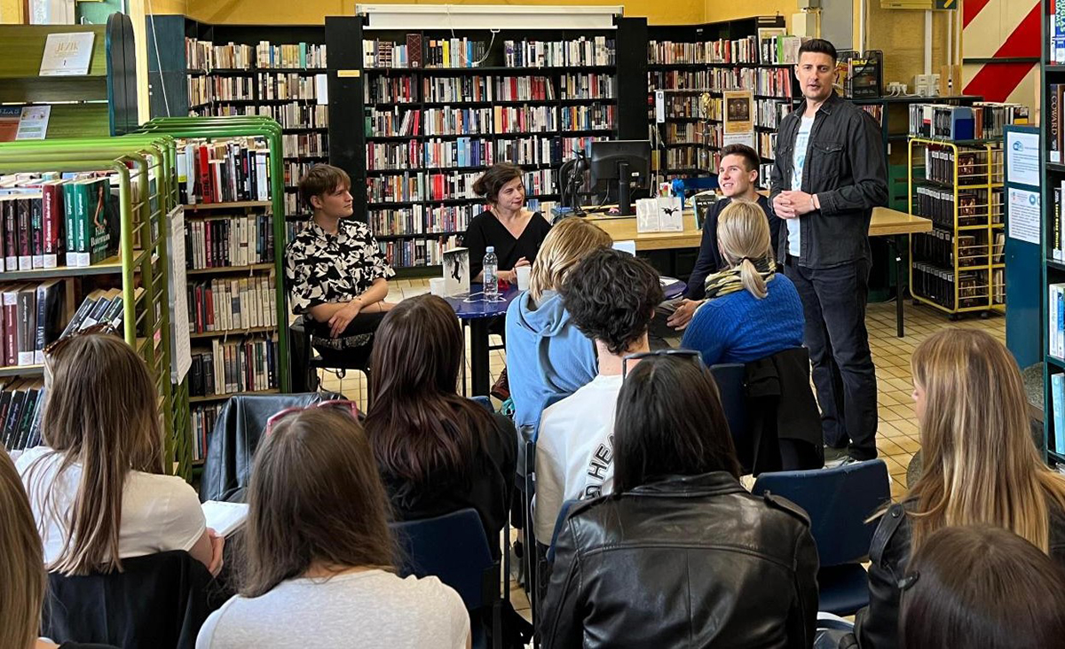 Alen Orlić s učenicima Klasične gimnazije na susretu s književnicom Monikom Herceg u skopu projekta Čitanje suvremenih hrvatskih književnica