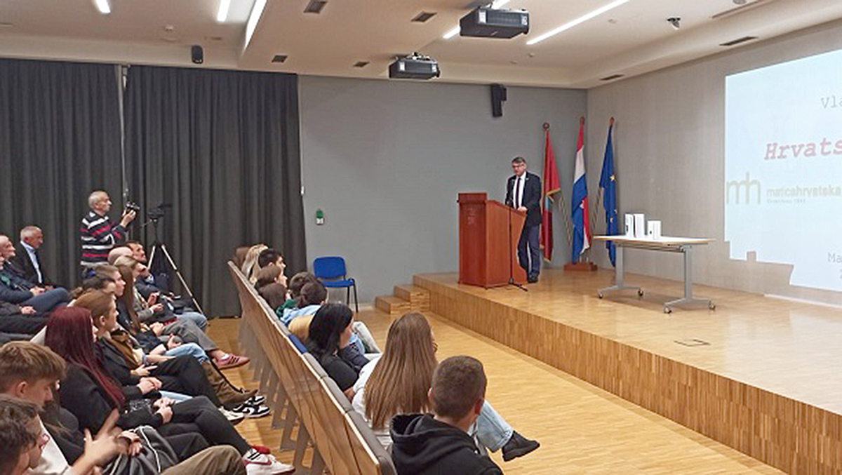 U prepunoj dvorani uz ugledne Sinjane nalazilo se i mnoštvo učenika Srednje strukovne škole bana Josipa Jelačića u pratnji nastavnika povijesti Stjepana Markovića