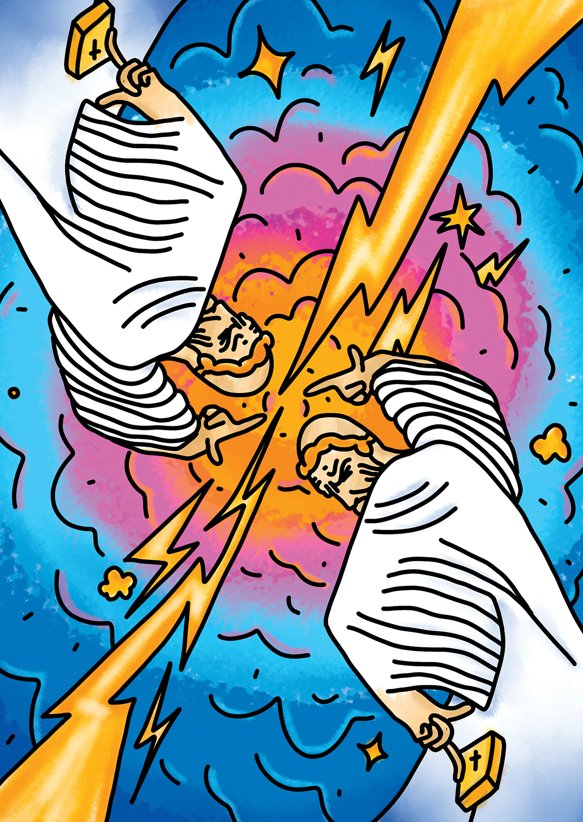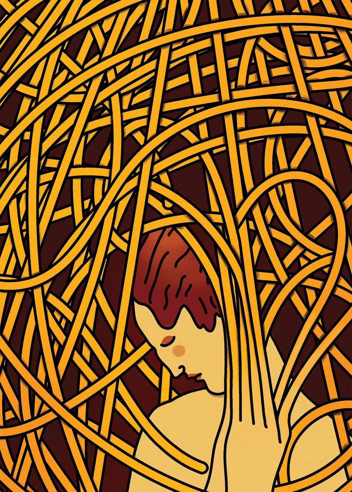 Za razliku od impozantnih izložbenih prostora Muzeja Ivana Meštrovića koji mogu odati dojam ekskluzivnosti – kako mi otkrivaju razgovori s poznanicima, pa čak i s mlađim koleg(ic)ama iz svijeta umjetnosti – ove ilustracije otvaraju prostor za susret s Meštrovićevim skulpturama u sasvim drugačijem svjetlu. Meštrovićevi protagonisti ovdje su se našli u svakodnevnim situacijama s kojima se lako možemo poistovjetiti, poput umornog Krista koji je sa slušalicama u ušima odspavao tijekom vožnje u autobusu (Glava Krista, 1913) i majke koja svoje svakodnevne frustracije i negativne emocije napokon ispušta kroz glasni vrisak (U očaju, 1927), ili pak u nadrealnim prikazima koji se poigravaju s formalnim elementima skulptura. U slučaju Žene u molitvi (1917), primjerice, njezini su elegantni prsti, karakteristični za to razdoblje Meštrovićeva stvaralaštva, izduženi do beskraja i zapleteni u klupko koje se širi oko nje, dok se namjerno nedovršena ruka Vesele mladosti (1946) nastavlja unedogled, u labirint koji je potpuno obavija.