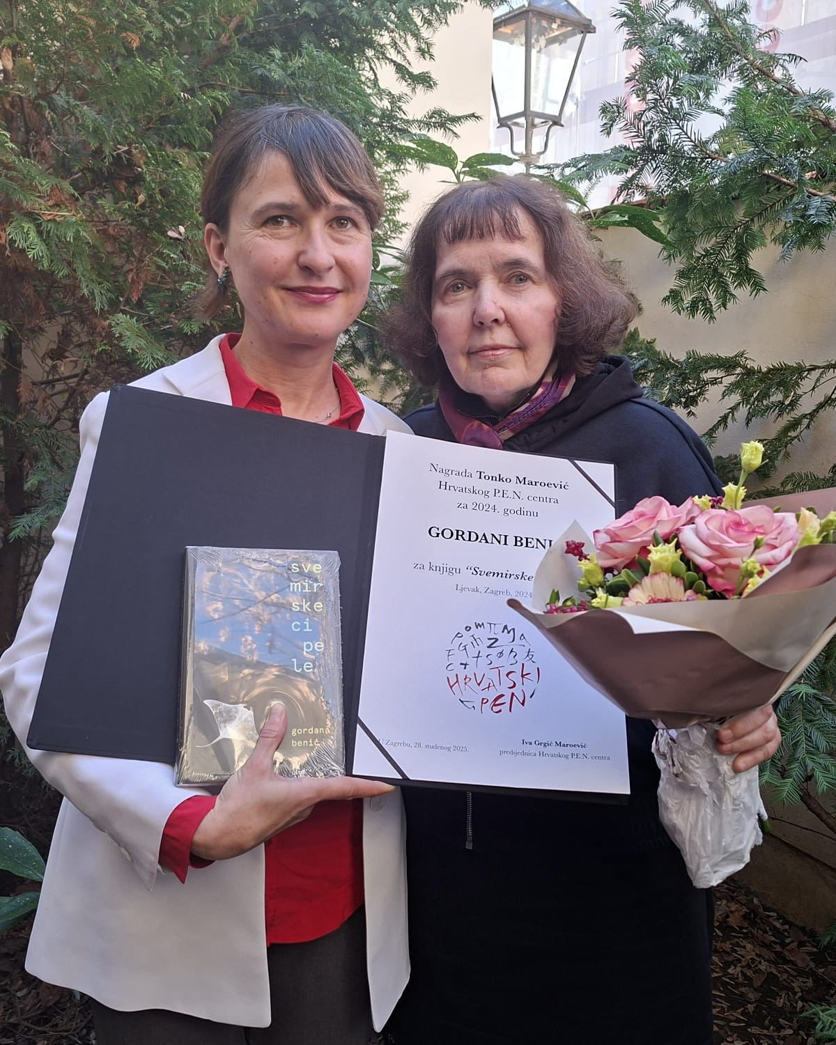 Nagrada, koja se sastoji od povelje, grafike akademika Zlatana Vrkljana i novčanog iznosa od 1000 eura dodijeljena joj je za zbirku Svemirske cipele (Naklada Ljevak, Zagreb, 2025) 28. studenoga u Vili Arko u Zagrebu. Finalisti nagrade za najbolju knjigu poezije objavljenu u Hrvatskoj na hrvatskome jeziku koju je 2024. ustanovio Hrvatski P.E.N. centar bili su uz Gordanu Benić i Lana Derkač, Azil za nebeska tijela (V. B. Z., Zagreb, 2025), Mak Maslać, Kako se razbijaju tanjuri (Durieux, Zagreb, 2024), Franjo Nagulov, Krvava knjiga (Durieux, Zagreb, 2024), Evelina Rudan, Polje, slama, žudnja (Fraktura, Zagreb, 2025).