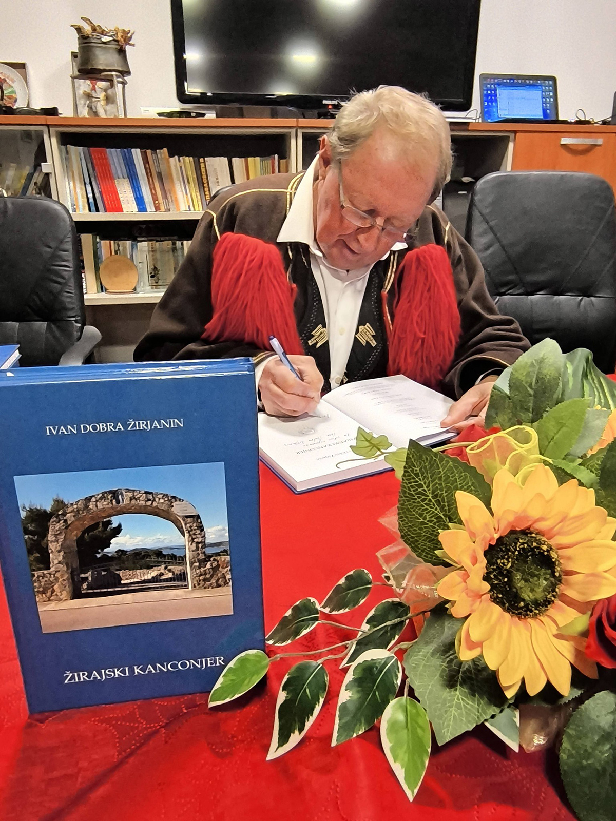 Ivan Dobra Žirjanin na predstavljanju knjige Žirajski kanconjer (Hrvatsko književno društvo, Rijeka, 2025)