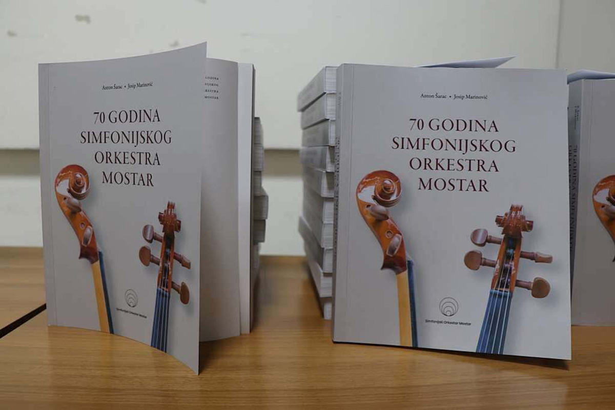 Čudesna je bila ta lijepa večer u studenome kada je Simfonijski orkestar Mostar, jedna od rijetkih kulturnih institucija u gradu koja nije prekidala rad ni tijekom rata, predstavljanjem velebne monografije na 450 strana – 70 godina Simfonijskog orkestra Mostar autora Antona Šarca i Josipa Marinovića – i službeno proslavio veliki jubilej: sedam desetljeća neprekidnog rada i stvaranja.