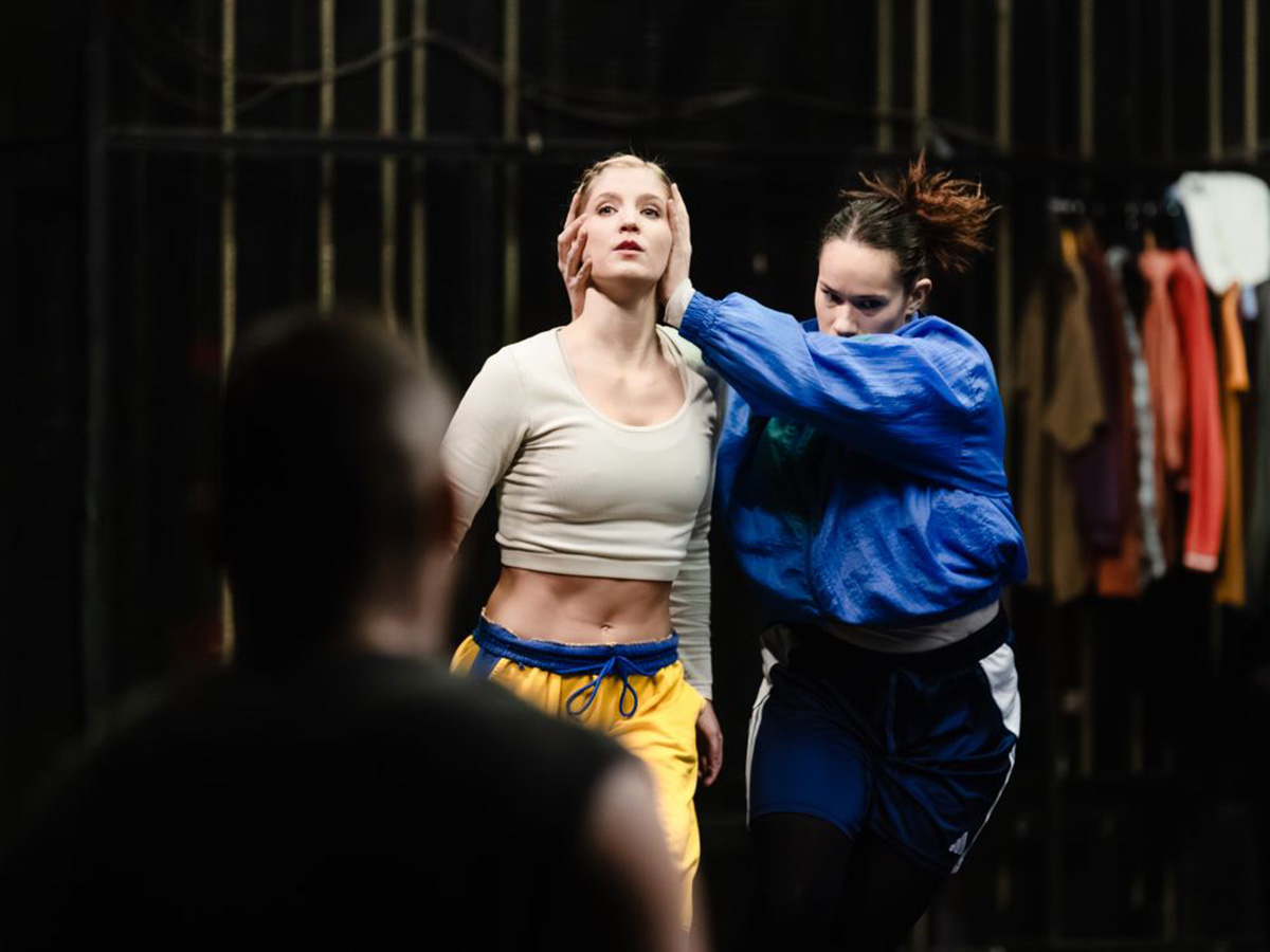 Već u prvom prizoru, u predstavi Acid/Kiselina, slojevita scenografija Barbore Ðulniûtë sugerira svijet kazaliðne i plesne umjetnosti kao u sebe zatvoreni mikrokozmos kojim upravlja implicitna boþanska instanca. Prva plesaèica (Ema Bates) zagrijava se sama u mraku plesne dvorane (jedne od scena u sceni). Postupno se okupljaju i druge plesačice (Luna Lilek, Gabrijela Kambić Kovačić, Dorotea Domović) i asistenti (Nikolina Prkačin, Adrian Pezdirc, Mateo Videk), započinjući svoje individualne rutine prije zajedničkog rada na koreografskom materijalu, paralelno s projekcijama u prednjem scenskom planu. Ansambl predvode Frano Mašković (Gabrijel), Nataša Dangubić (Sonja) i Filip Nola (Adrian).