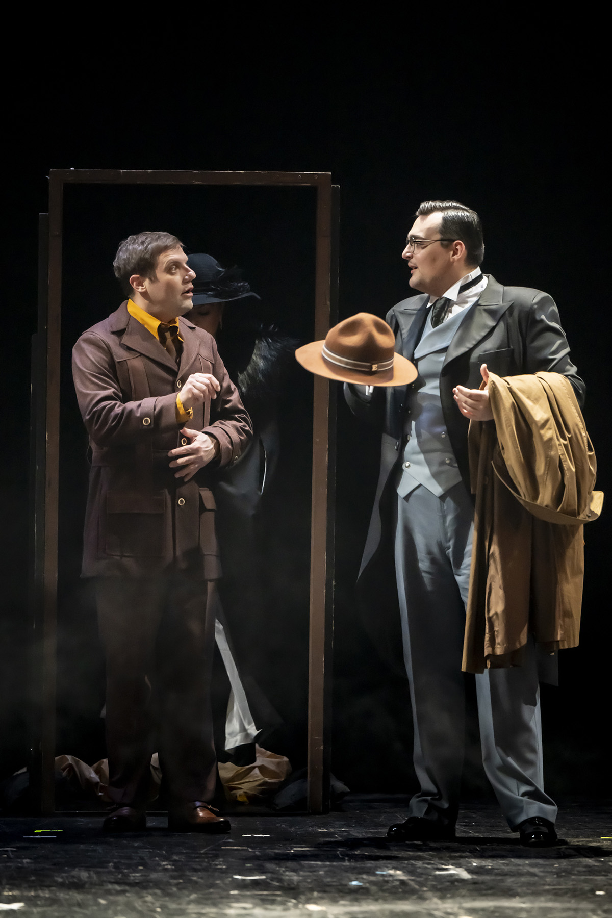 Jedini kuriozitet koji je posljednja prošlogodišnja (2025) premijera u Kerempuhu izazvala kod ove kritičarke je dodatak ili, zapravo, puni naslov predstave. Očešao me kao potencijalna najava za kakav interaktivni segment, koliko god mali bio, pogotovo kada se u medijima promovirala ideja kako se publika pretvara u detektive. Ipak, u pitanju je bio samo dobar marketing zato što je, nažalost, ritam predstave poprilično slab i trom za jednu kanonsku filmsku komediju. Od početka predstava samo kratko koketira, bolje rečeno jednom flertuje, s filmskim žanrom kada se na visokoj pokretnoj scenografiji (Stefano Katunar) projiciraju naslov, imena glumaca, podjela likova i kratki uvod u priču s mjestom i vremenom radnje – Sjedinjene Američke Države, godina 1954. tijekom makartizma odnosno druge „Crvene panike“ (Red Scare), lova na članove komunističkih partija u SAD-u. Osim filma, potentnije su reference na samu društvenu igru koja se pojavljuje na sceni u svom fizičkom obliku kao kutija i ploča za igranje, ali i kroz izgled scenografije, odnosno sobe u kojoj se odvija radnja te mogućih šest oružja koja su također dio društvene igre: pištolj, nož, olovna cijev, uže, svijećnjak i francuski ključ.