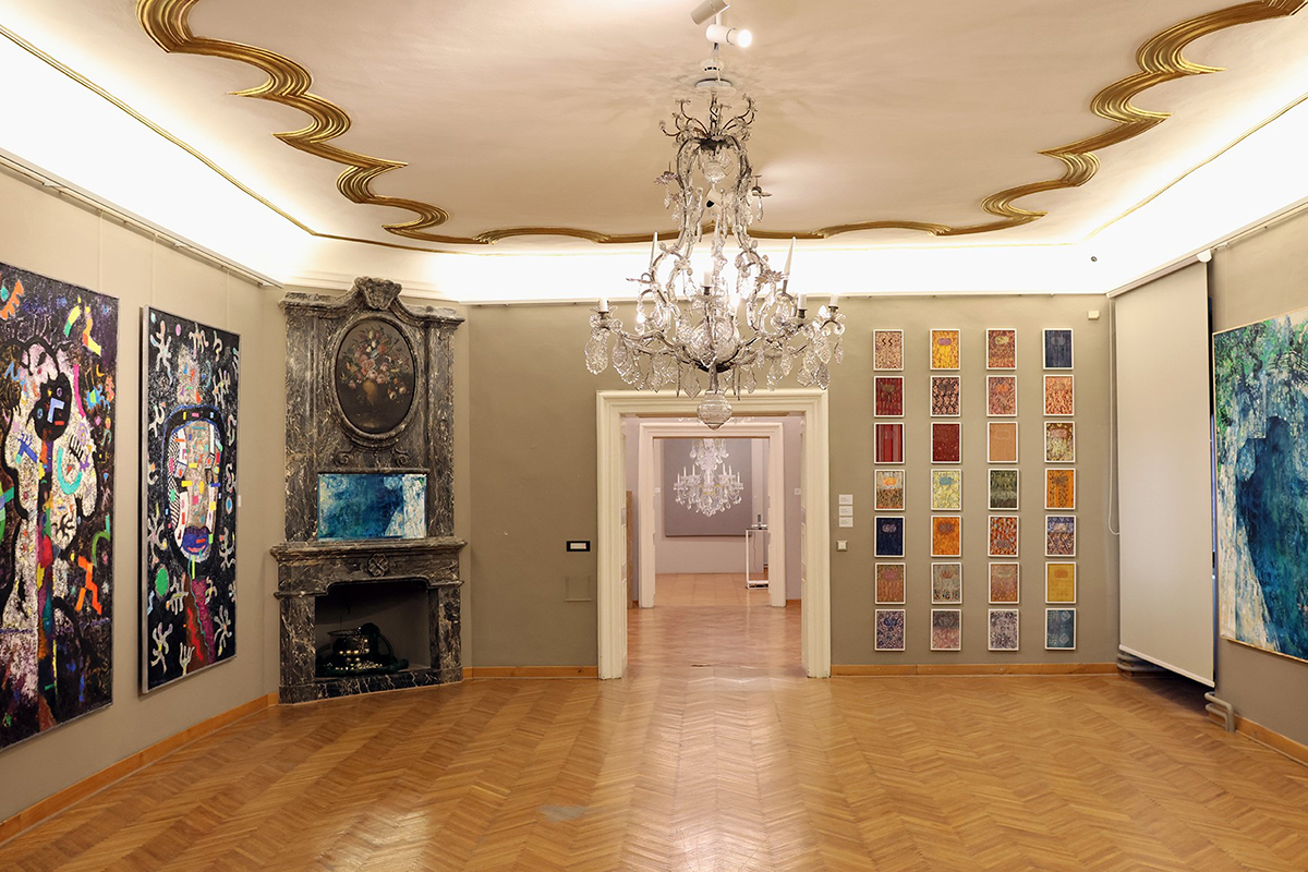 Postav u palači Sermage - na fotografiji su s lijeva na desno vidljivi radovi Zlatka Kesera, Olivera Mišure, Lee Popinjač i Natalije Borčić Peuc / Snimio Andrej Švoger